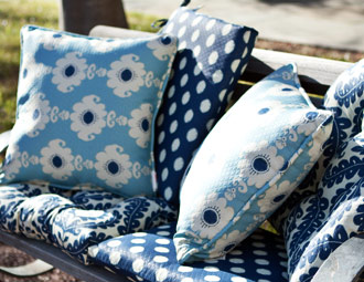 (L-R): Cushions in Taupe and Kona Cloud with contrast piping,